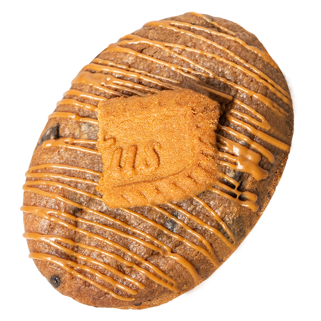 The Biscoff-iest Biscoff cookie ever! Luscious Cookie dough filled with creamy Biscoff spread, crowned with more Biscoff and a crunchy Biscoff biscuit.