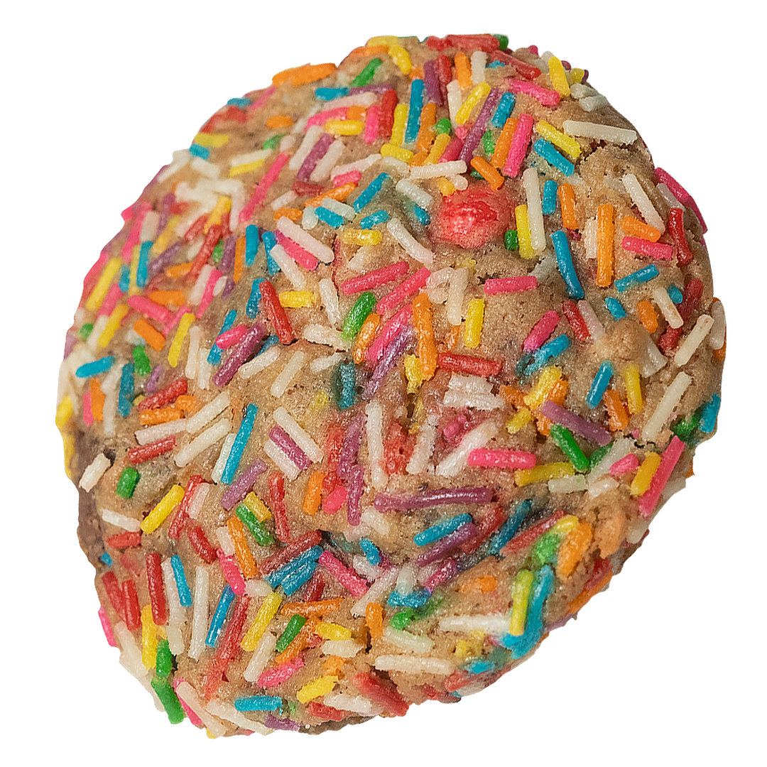 Sweet Cake batter flavoured cookie dough , bursting with milk chocolate and white chocolate chunks, vibrant gems for the crunch and a shower of colourful sprinkle is going to give an explosion of flavours and fun!